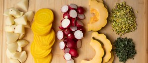 • On same baking sheet, toss squash, beets and radish with 2 tbsp. olive oil and salt and pepper to taste.