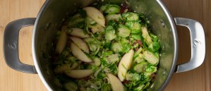 • Add 2 tbsp. water and apple and cover with a lid. Cook for 2–3 minutes, until tender. Set aside.